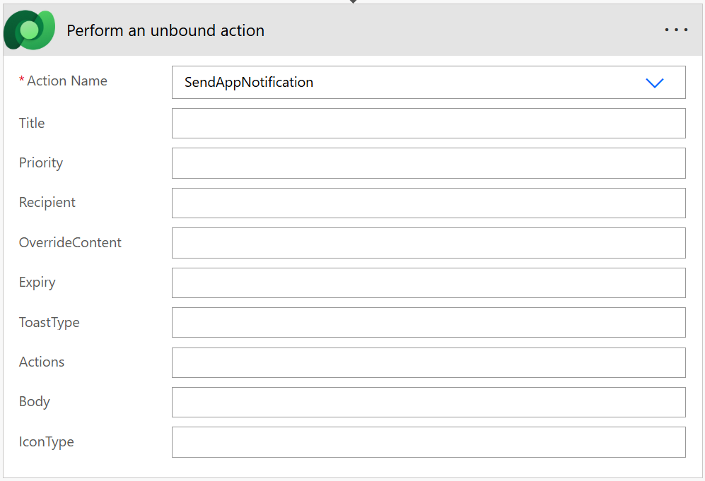 Use the Action Name dropdown of this action to select SendAppNotification